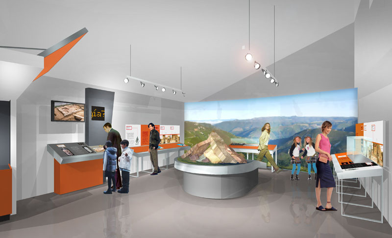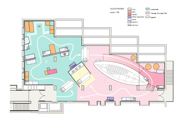 El mobiliario proyectado integra la colección expuesta con los diversos recursos didácticos, acomodando eficazmente piezas de muy desigual escala con los diferentes textos, ilustraciones de gran formato, audiovisuales, dibujos explicativos y puntos interactivos. Al mismo tiempo, se ha cuidado que las soluciones adoptadas conformen un conjunto coherente y en armonía con el edificio: un espacio diseñado para una experiencia en la que disfrutar con el patrimonio arqueológico y con nuestra historia.