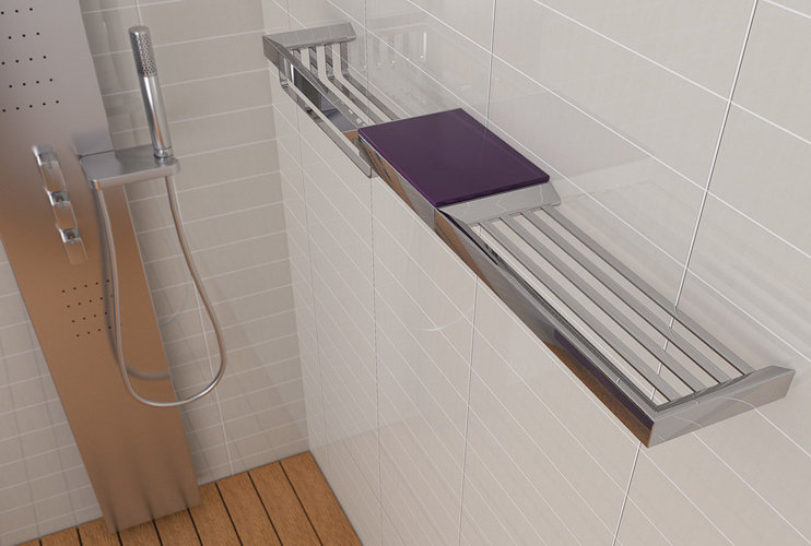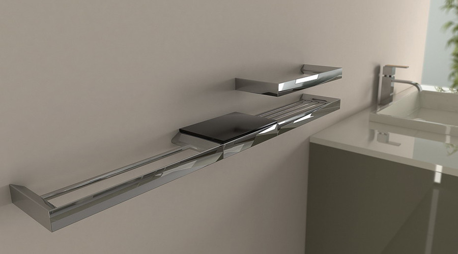ELITE TRIA puede ser utilizado tanto como un accesorio tradicional, por piezas independientes, como a modo de sistema, gracias a su capacidad de generar composiciones lineales, creando conjuntos adecuados a las necesidades de uso de cada área de actividad del baño, a las características del habitáculo o al gusto de sus ocupantes.