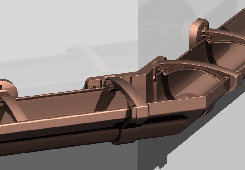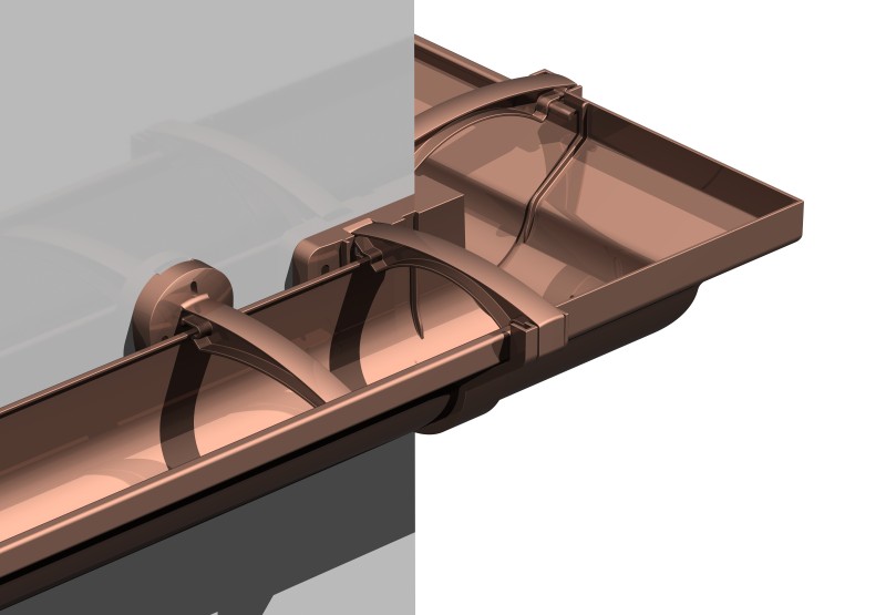 El canalón Plunia aúna un atractivo diseño, coherente con las tendencias arquitectónicas actuales, con unas excepcionales cualidades mecánicas: un perfil con una gran capacidad hidráulica, unos accesorios provistos de un novedoso sistema de cierre por clips y un gancho superior oculto que mantiene la estética del conjunto.